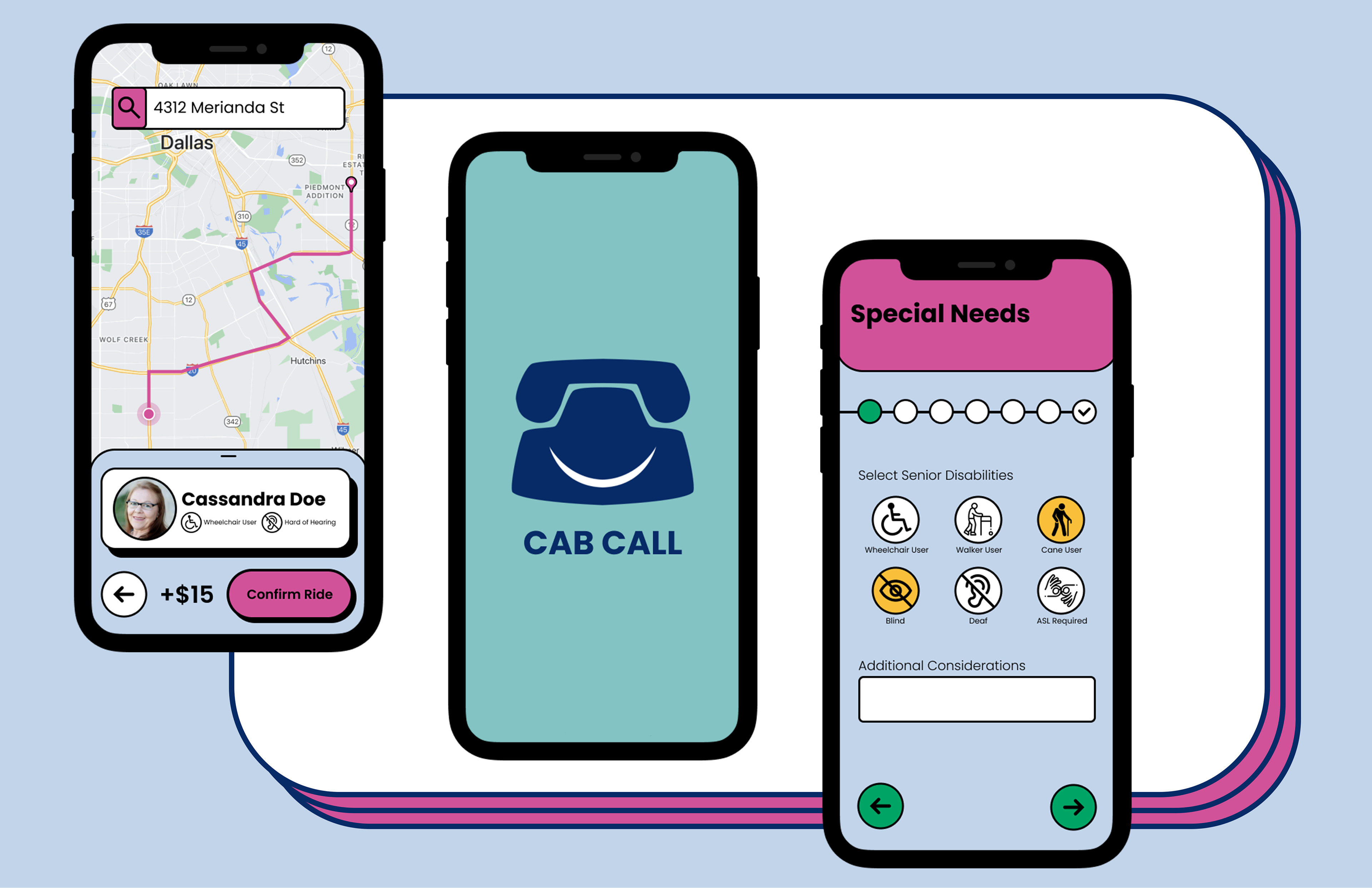 An accessible ride sharing solution that aims to break down physical and digital barriers for people with disabilities.